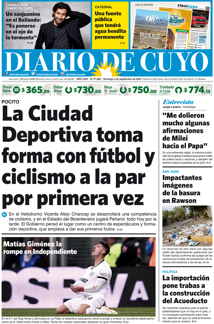 Diario de Cuyo | HOME | Noticias Tapa Edición 3 de Septiembre de 2023 Por Redacción Diario de Cuyo 02/09/2023 · 0:00 Escuchar la noticia Escuchar la noticia Your browser doesn’t support HTML5 audio Ver los comentarios ›