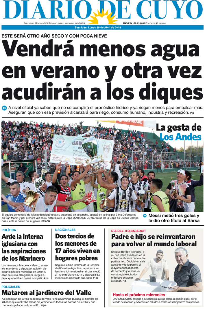 Diario de Cuyo | HOME | Noticias | Tapa Edición Tapa Edición 30 de Abril 2018 Por Redacción Diario de Cuyo 29/04/2018 · 0:00 Escuchar la noticia Escuchar la noticia Your browser doesn’t support HTML5 audio Tapa Edición Ver los comentarios ›