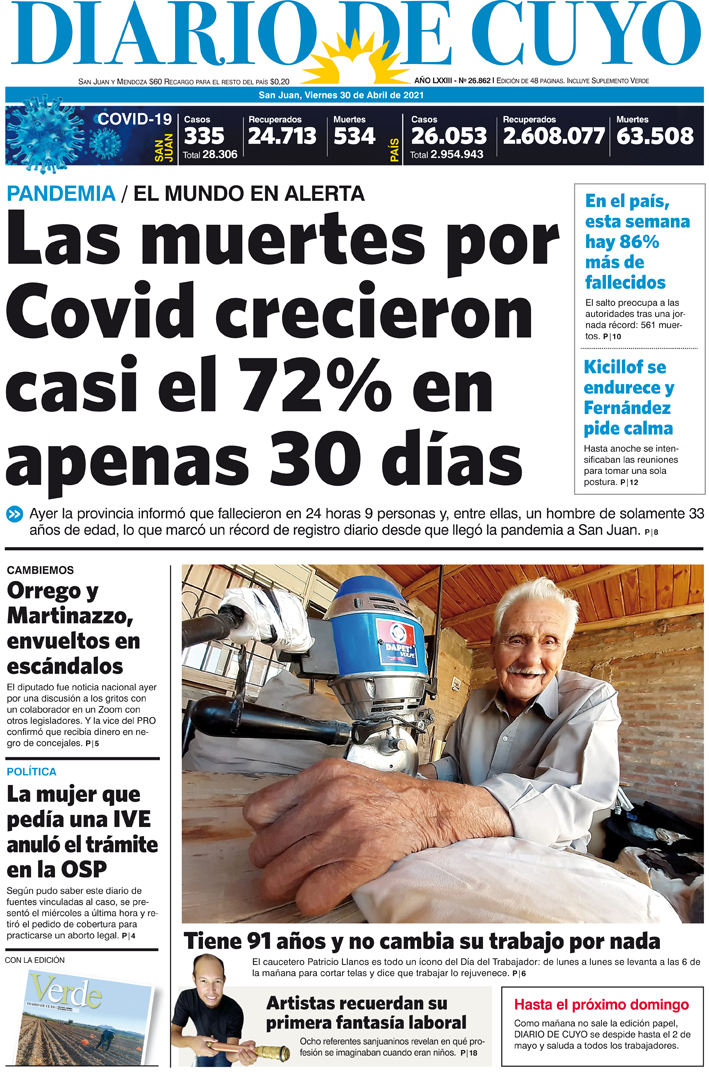 Diario de Cuyo | HOME | Noticias Tapa Edición 30 de Abril del 2021 Por Redacción Diario de Cuyo 29/04/2021 · 0:00 Escuchar la noticia Escuchar la noticia Your browser doesn’t support HTML5 audio Ver los comentarios ›