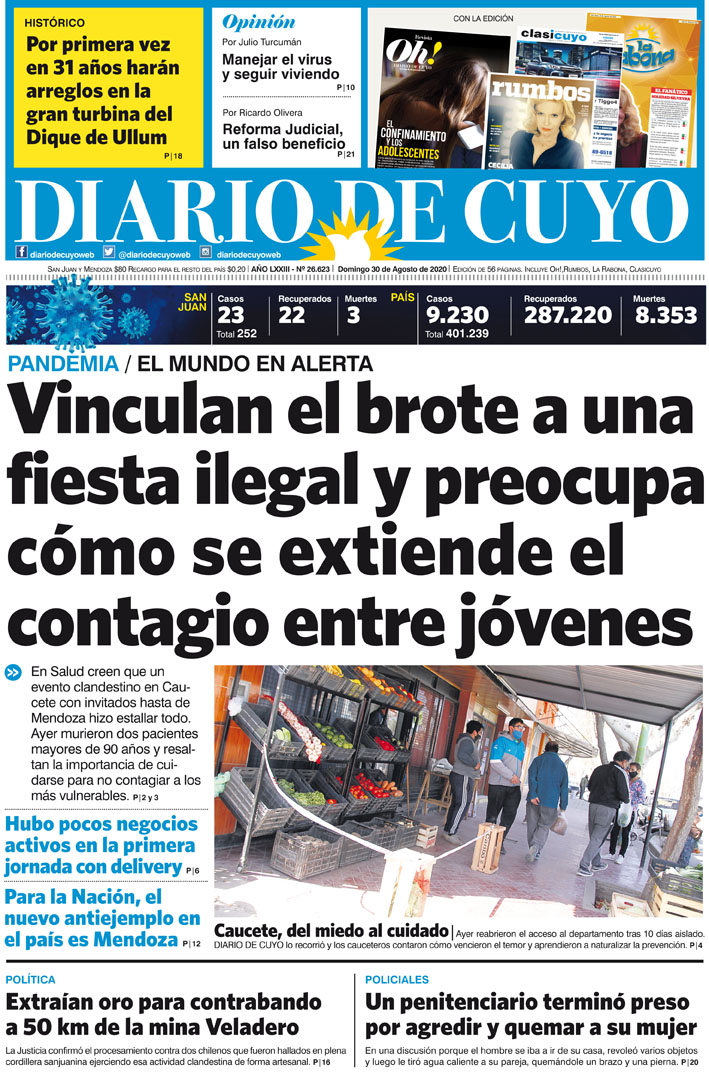 Diario de Cuyo | HOME | Noticias Tapa Edición 30 de Agosto del 2020 Por Redacción Diario de Cuyo 29/08/2020 · 0:00 Escuchar la noticia Escuchar la noticia Your browser doesn’t support HTML5 audio Ver los comentarios ›