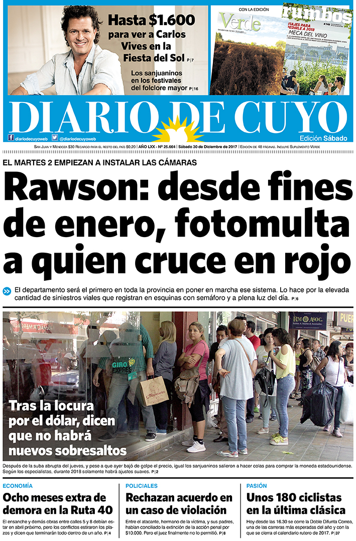 Diario de Cuyo | HOME | Noticias | Tapa Edición Tapa Edición 30 de Diciembre del 2017 Por Redacción Diario de Cuyo 29/12/2017 · 0:00 Escuchar la noticia Escuchar la noticia Your browser doesn’t support HTML5 audio Tapa Edición Ver los comentarios ›