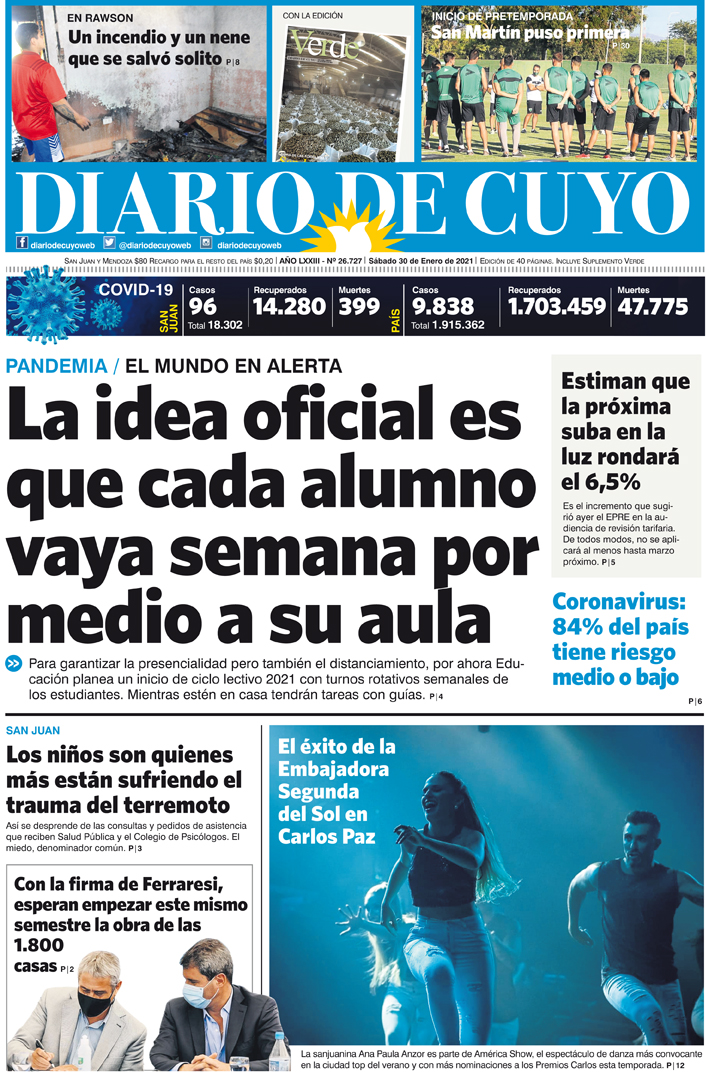 Diario de Cuyo | HOME | Noticias | Tapa Edición Tapa Edición 30 de Enero de 2021 Por Redacción Diario de Cuyo 29/01/2021 · 0:00 Escuchar la noticia Escuchar la noticia Your browser doesn’t support HTML5 audio Tapa Edición Ver los comentarios ›