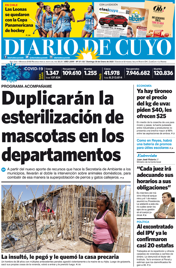 Diario de Cuyo | HOME | Noticias Tapa Edición 30 de Enero del 2022 Por Redacción Diario de Cuyo 29/01/2022 · 0:00 Escuchar la noticia Escuchar la noticia Your browser doesn’t support HTML5 audio Ver los comentarios ›