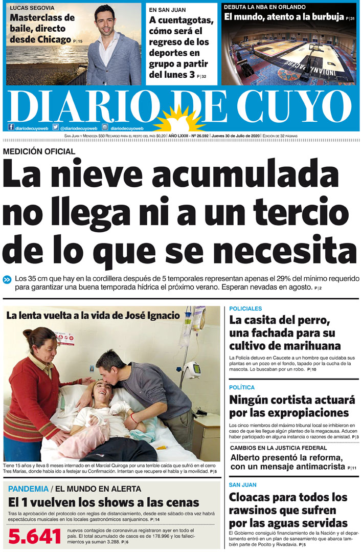 Diario de Cuyo | HOME | Noticias Tapa Edición 30 de Julio del 2020 Por Redacción Diario de Cuyo 29/07/2020 · 0:00 Escuchar la noticia Escuchar la noticia Your browser doesn’t support HTML5 audio Ver los comentarios ›