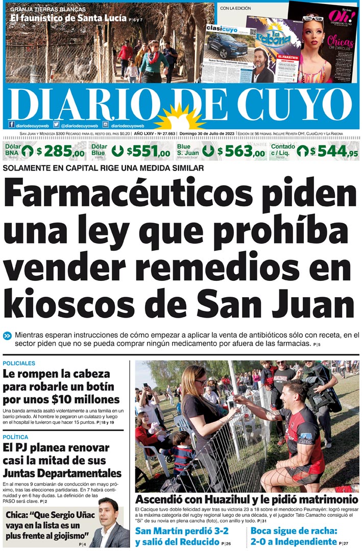 Diario de Cuyo | HOME | Noticias Tapa Edición 30 de Julio del 2023 Por Redacción Diario de Cuyo 29/07/2023 · 0:00 Escuchar la noticia Escuchar la noticia Your browser doesn’t support HTML5 audio Ver los comentarios ›