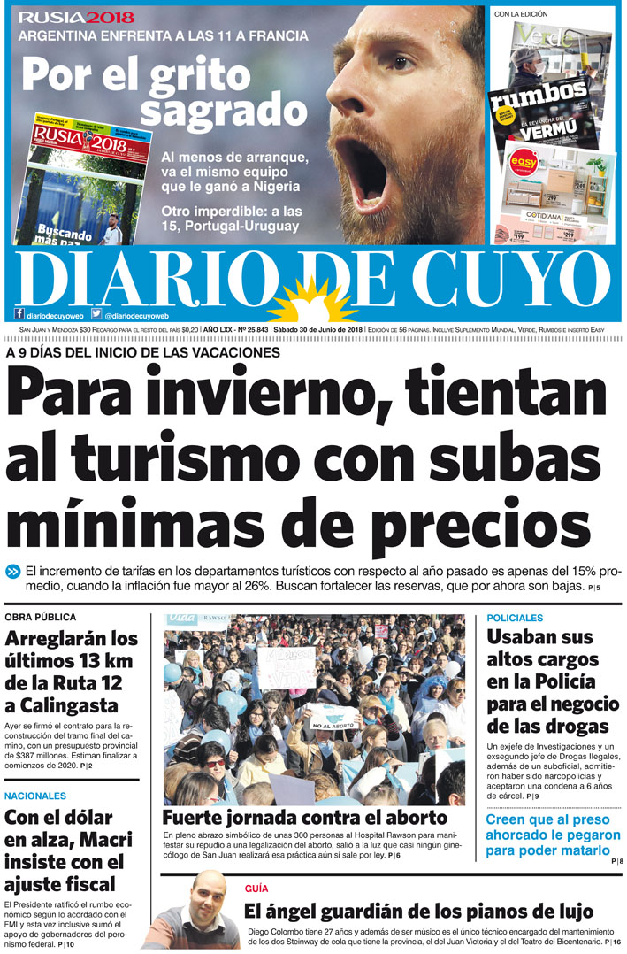 Diario de Cuyo | HOME | Noticias | Tapa Edición Tapa Edición 30 de Junio 2018 Por Redacción Diario de Cuyo 29/06/2018 · 0:00 Escuchar la noticia Escuchar la noticia Your browser doesn’t support HTML5 audio Tapa Edición Ver los comentarios ›
