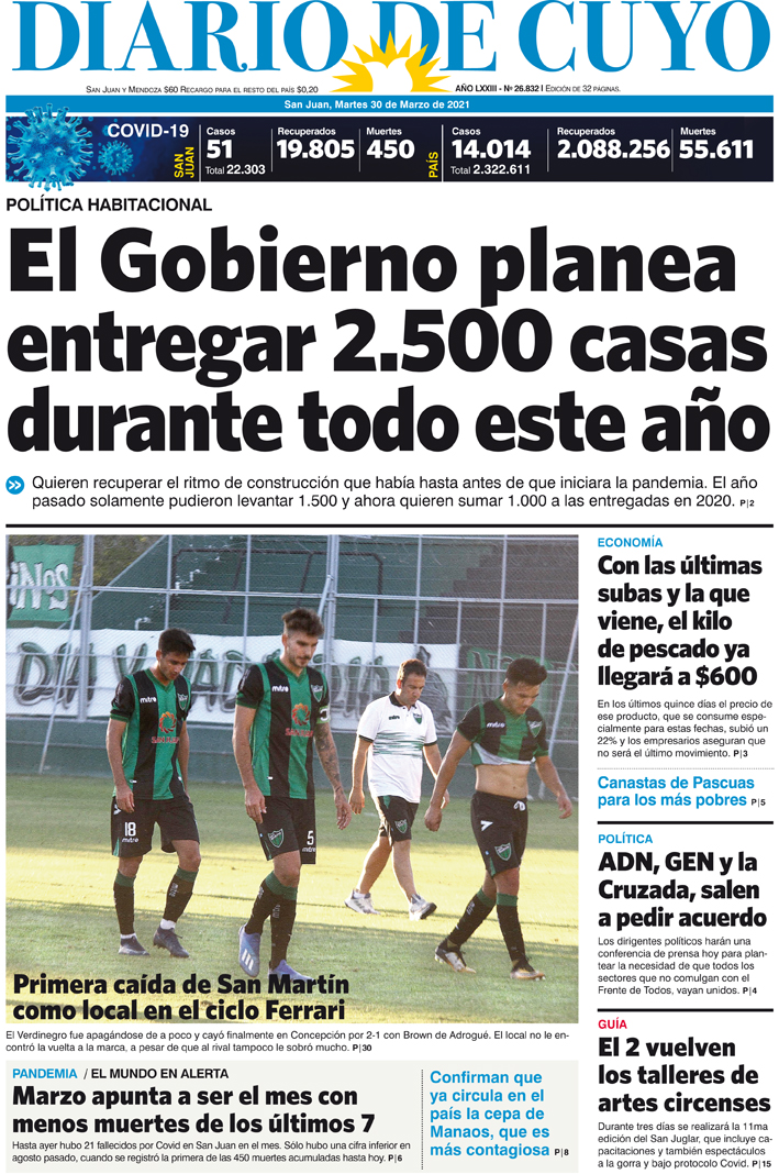 Diario de Cuyo | HOME | Noticias Tapa Edición 30 de Marzo del 2021 Por Redacción Diario de Cuyo 29/03/2021 · 0:00 Escuchar la noticia Escuchar la noticia Your browser doesn’t support HTML5 audio Ver los comentarios ›