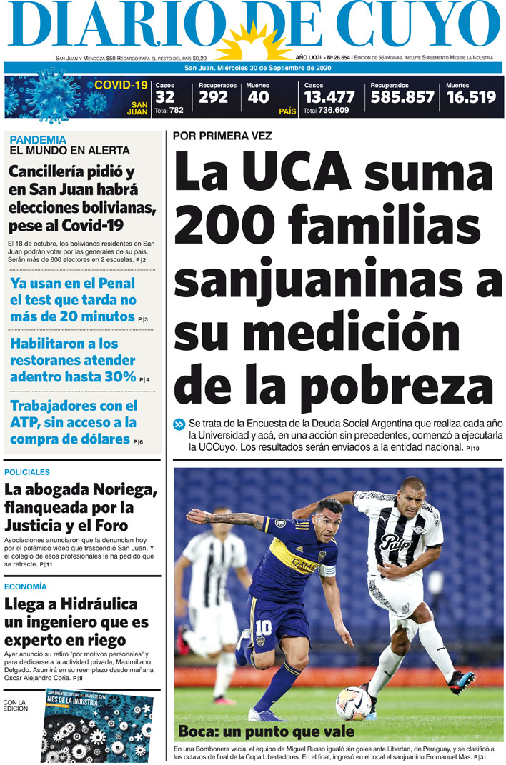 Diario de Cuyo | HOME | Noticias Tapa Edición 30 de Septiembre del 2020 Por Redacción Diario de Cuyo 29/09/2020 · 0:00 Escuchar la noticia Escuchar la noticia Your browser doesn’t support HTML5 audio Ver los comentarios ›