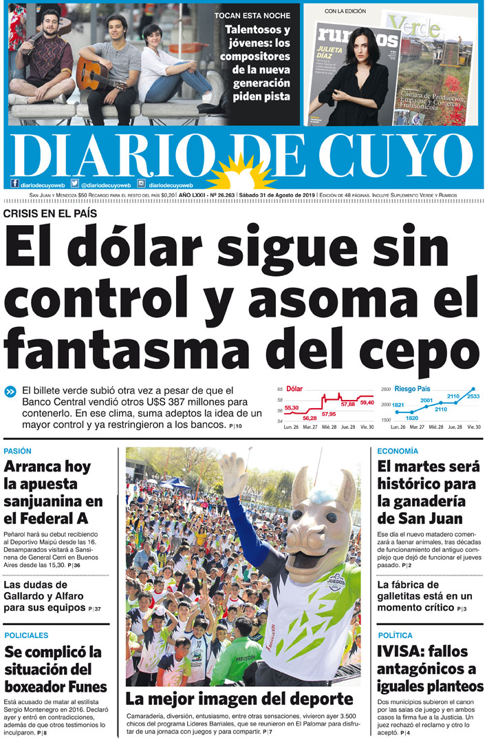 Diario de Cuyo | HOME | Noticias Tapa Edición 31 de Agosto 2019 Por Redacción Diario de Cuyo 31/08/2019 · 0:00 Escuchar la noticia Escuchar la noticia Your browser doesn’t support HTML5 audio Ver los comentarios ›