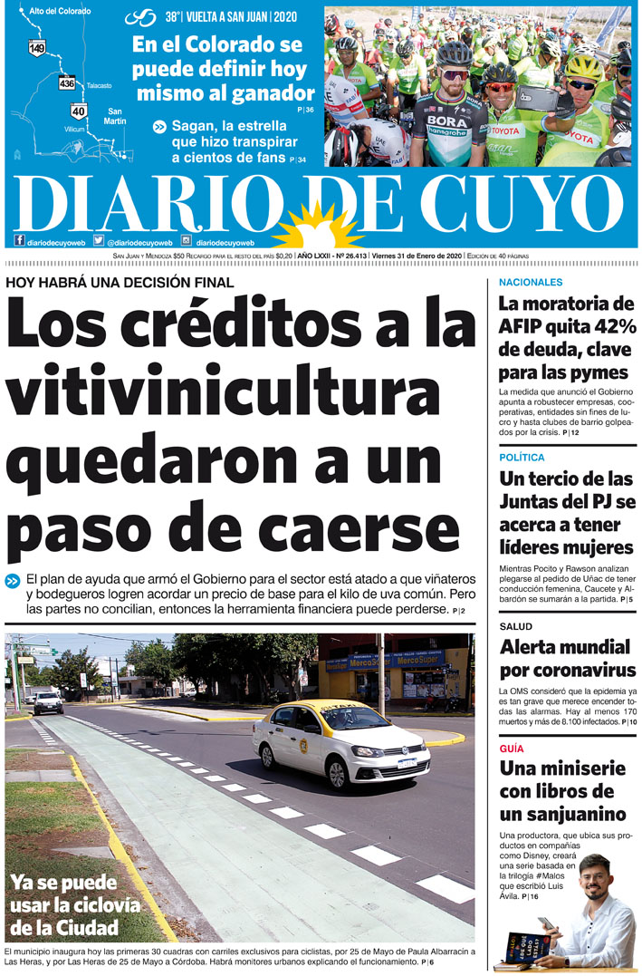 Diario de Cuyo | HOME | Noticias Tapa Edición 31 de Enero de 2020 Por Redacción Diario de Cuyo 30/01/2020 · 0:00 Escuchar la noticia Escuchar la noticia Your browser doesn’t support HTML5 audio Ver los comentarios ›