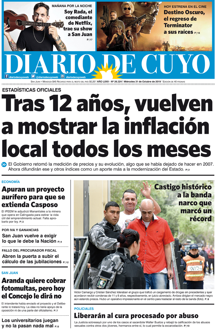 Diario de Cuyo | HOME | Noticias | Tapa Edición Tapa Edición 31 de Octubre 2019 Por Redacción Diario de Cuyo 30/10/2019 · 0:00 Escuchar la noticia Escuchar la noticia Your browser doesn’t support HTML5 audio Tapa Edición Ver los comentarios ›