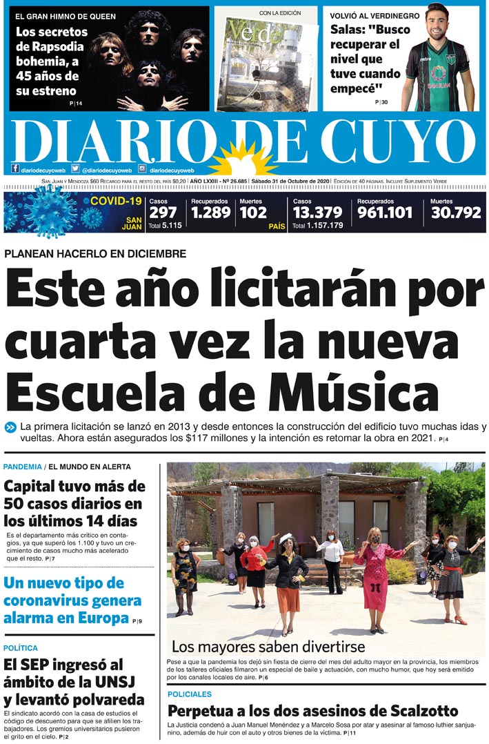 Diario de Cuyo | HOME | Noticias | Tapa Edición Tapa Edición 31 de Octubre de 2020 Por Redacción Diario de Cuyo 30/10/2020 · 0:00 Escuchar la noticia Escuchar la noticia Your browser doesn’t support HTML5 audio Tapa Edición Ver los comentarios ›
