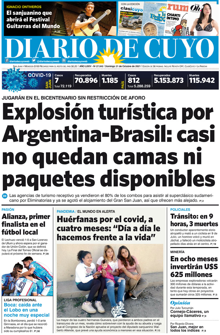 Diario de Cuyo | HOME | Noticias Tapa Edición 31 de Octubre del 2021 Por Redacción Diario de Cuyo 31/10/2021 · 0:00 Escuchar la noticia Escuchar la noticia Your browser doesn’t support HTML5 audio Ver los comentarios ›