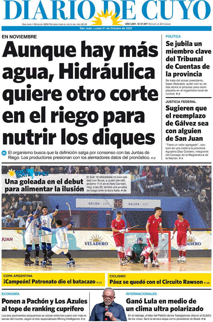 Diario de Cuyo | HOME | Noticias Tapa Edición 31 de Octubre del 2022 Por Redacción Diario de Cuyo 31/10/2022 · 0:00 Escuchar la noticia Escuchar la noticia Your browser doesn’t support HTML5 audio Ver los comentarios ›