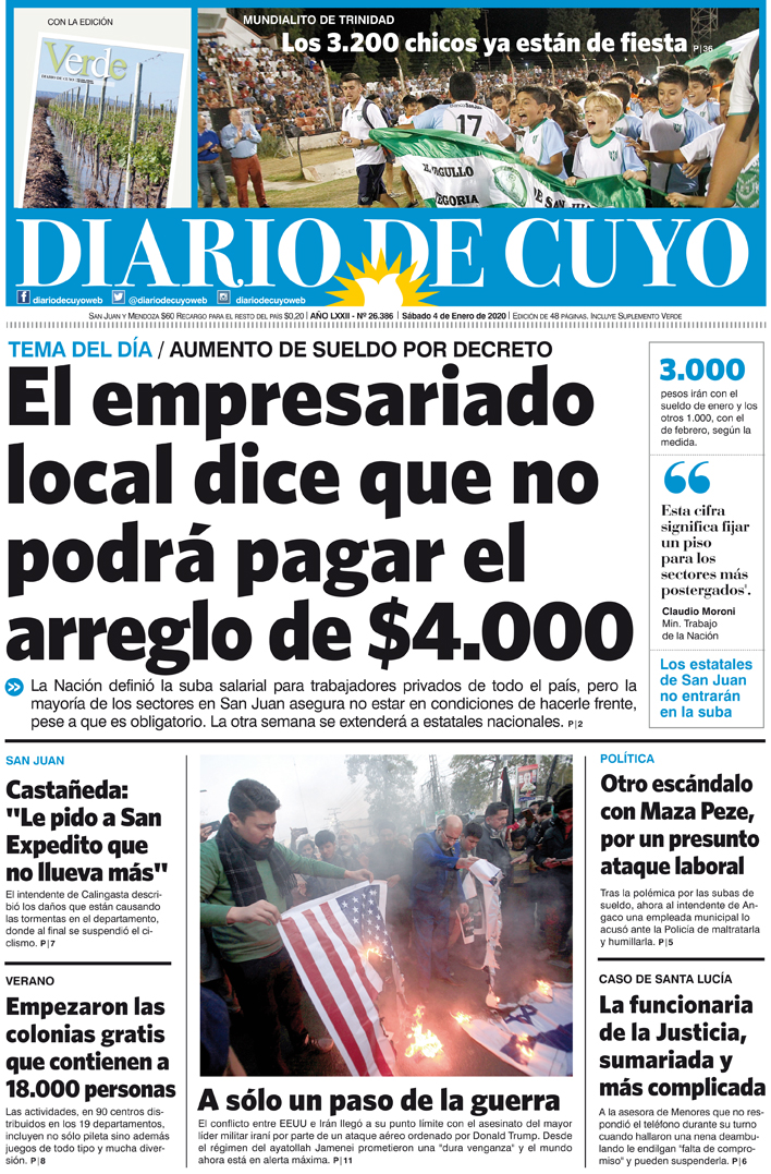 Diario de Cuyo | HOME | Noticias | Tapa Edición Tapa Edición 4 de Enero 2020 Por Redacción Diario de Cuyo 04/01/2020 · 0:00 Escuchar la noticia Escuchar la noticia Your browser doesn’t support HTML5 audio Tapa Edición Ver los comentarios ›