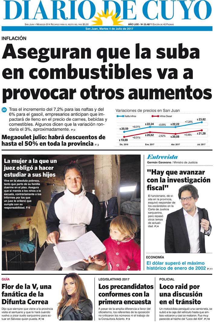 Diario de Cuyo | HOME | Noticias Tapa Edición 4 de Julio del 2017 Por Redacción Diario de Cuyo 03/07/2017 · 0:00 Escuchar la noticia Escuchar la noticia Your browser doesn’t support HTML5 audio Ver los comentarios ›