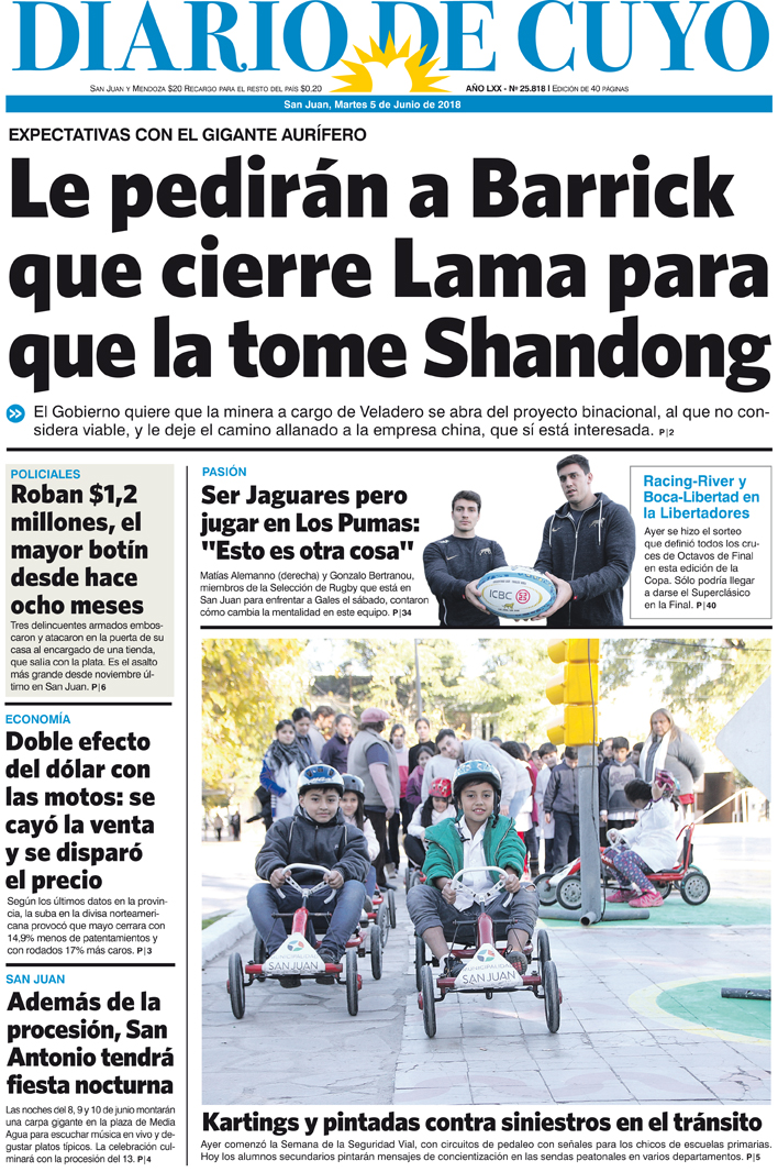 Diario de Cuyo | HOME | Noticias | Tapa Edición Tapa Edición 5 de Junio de 2018 Por Redacción Diario de Cuyo 04/06/2018 · 0:00 Escuchar la noticia Escuchar la noticia Your browser doesn’t support HTML5 audio Tapa Edición Ver los comentarios ›