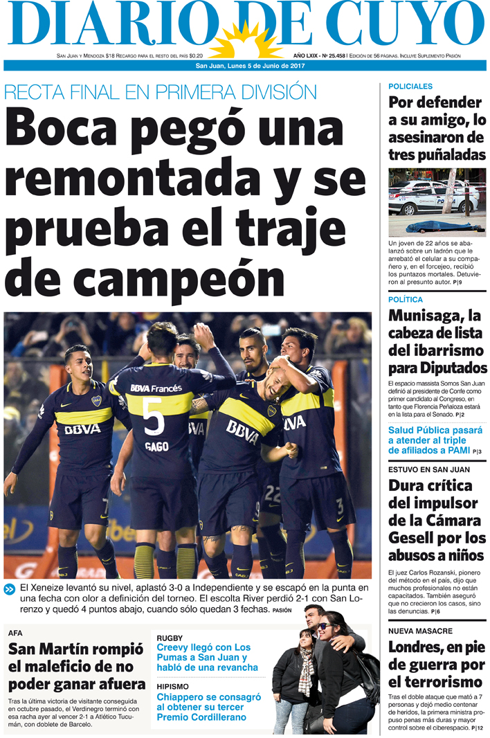 Diario de Cuyo | HOME | Noticias Tapa Edición 5 de Junio del 2017 Por Redacción Diario de Cuyo 05/06/2017 · 0:00 Escuchar la noticia Escuchar la noticia Your browser doesn’t support HTML5 audio Ver los comentarios ›