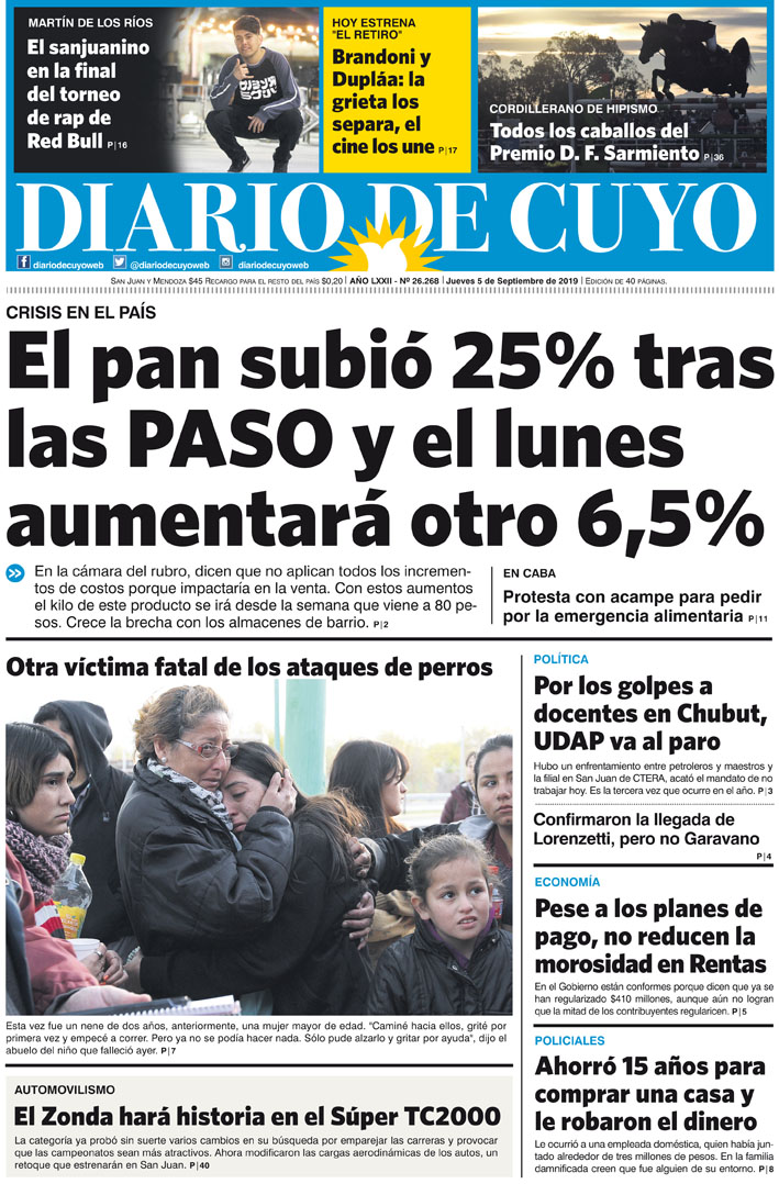 Diario de Cuyo | HOME | Noticias | Tapa Edición Tapa Edición 5 de Septiembre 2019 Por Redacción Diario de Cuyo 04/09/2019 · 0:00 Escuchar la noticia Escuchar la noticia Your browser doesn’t support HTML5 audio Tapa Edición Ver los comentarios ›