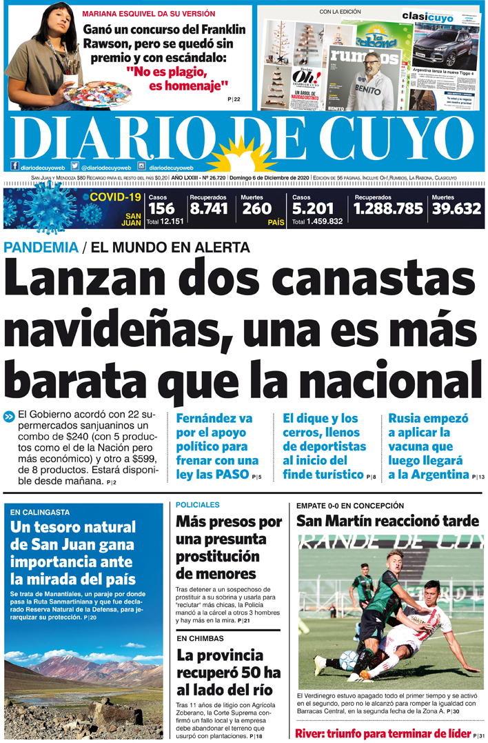 Diario de Cuyo | HOME | Noticias | Tapa Edición Tapa Edición 6 de Diciembre de 2020 Por Redacción Diario de Cuyo 05/12/2020 · 0:00 Escuchar la noticia Escuchar la noticia Your browser doesn’t support HTML5 audio Tapa Edición Ver los comentarios ›