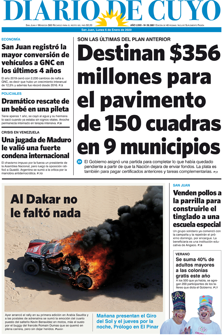 Diario de Cuyo | HOME | Noticias | Tapa Edición Tapa Edición 6 de Enero 2020 Por Redacción Diario de Cuyo 05/01/2020 · 0:00 Escuchar la noticia Escuchar la noticia Your browser doesn’t support HTML5 audio Tapa Edición Ver los comentarios ›