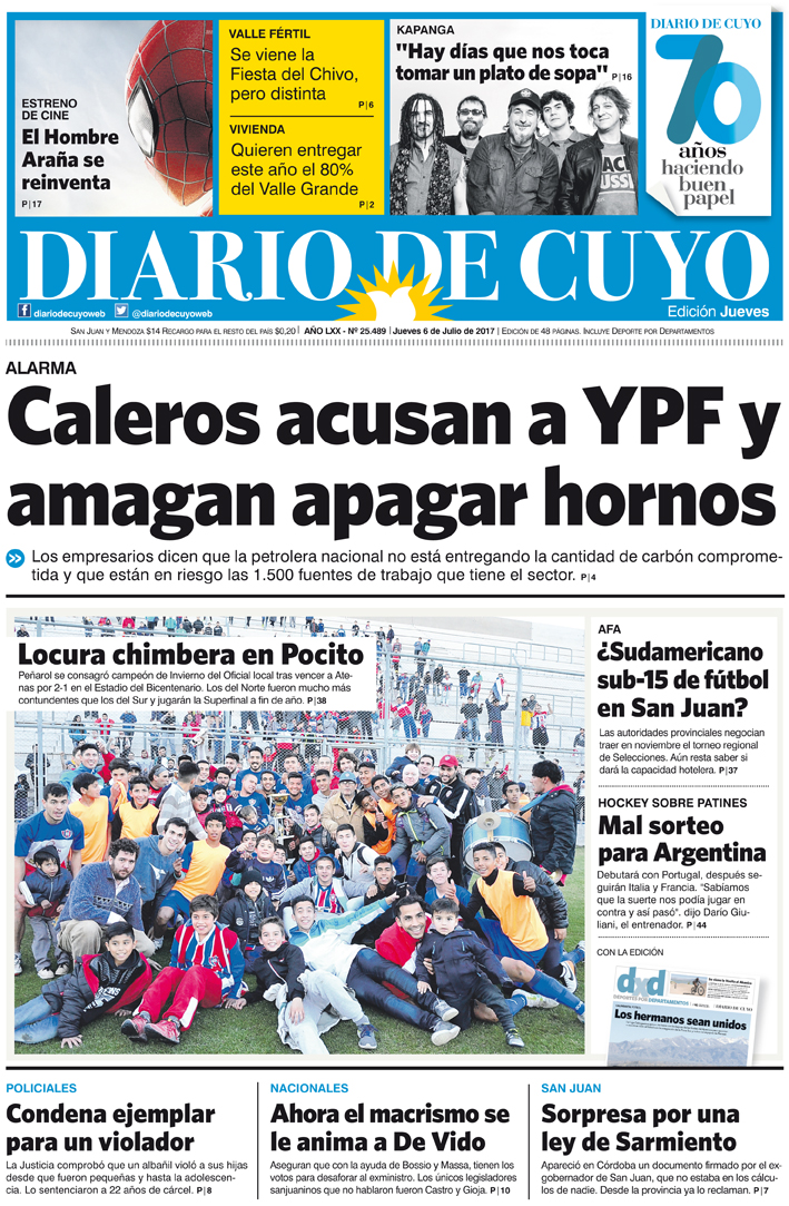 Diario de Cuyo | HOME | Noticias Tapa Edición 6 de Julio de 2017 Por Redacción Diario de Cuyo 05/07/2017 · 0:00 Escuchar la noticia Escuchar la noticia Your browser doesn’t support HTML5 audio Ver los comentarios ›