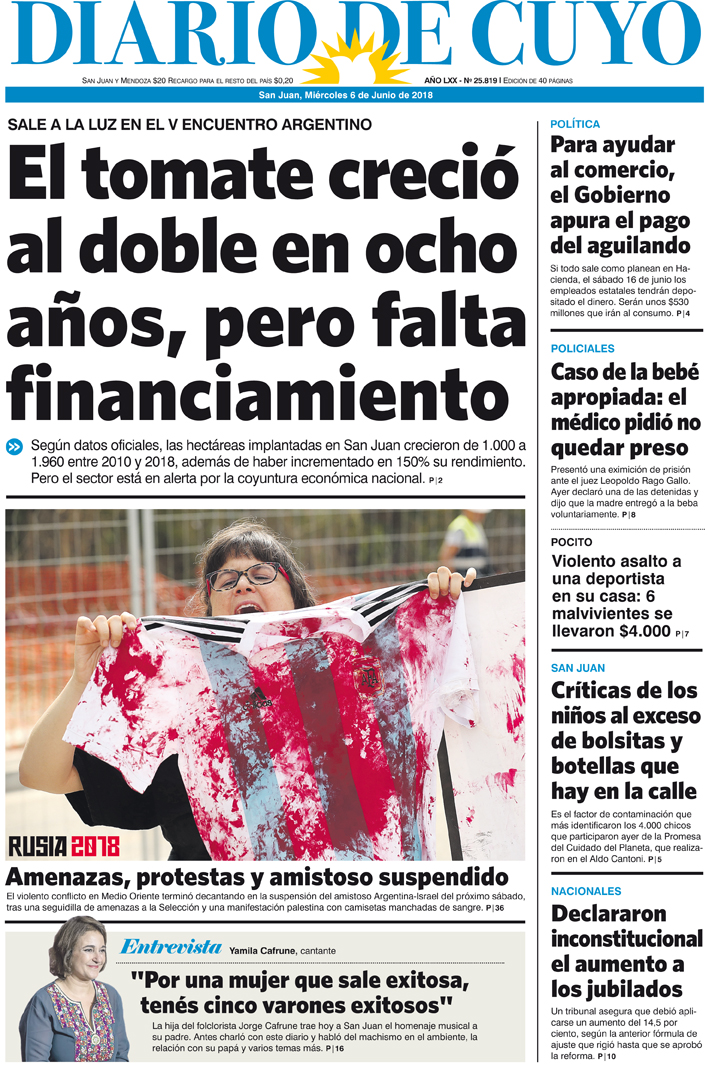 Diario de Cuyo | HOME | Noticias | Tapa Edición Tapa Edición 6 de Junio de 2018 Por Redacción Diario de Cuyo 05/06/2018 · 0:00 Escuchar la noticia Escuchar la noticia Your browser doesn’t support HTML5 audio Tapa Edición Ver los comentarios ›