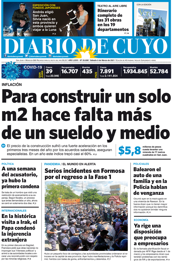 Diario de Cuyo | HOME | Noticias | Tapa Edición Tapa Edición 6 de Marzo de 2021 Por Redacción Diario de Cuyo 05/03/2021 · 0:00 Escuchar la noticia Escuchar la noticia Your browser doesn’t support HTML5 audio Tapa Edición Ver los comentarios ›