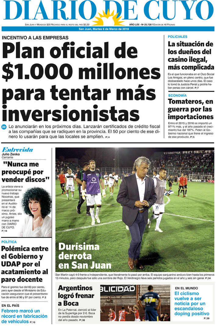 Diario de Cuyo | HOME | Noticias | Tapa Edición Tapa Edición 6 de Marzo del 2018 Por Redacción Diario de Cuyo 05/03/2018 · 0:00 Escuchar la noticia Escuchar la noticia Your browser doesn’t support HTML5 audio Tapa Edición Ver los comentarios ›