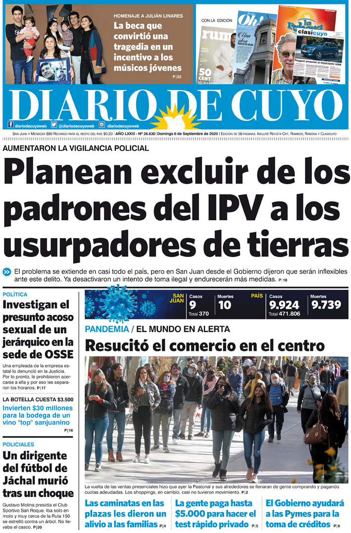 Diario de Cuyo | HOME | Noticias | Tapa Edición Tapa Edición 6 de Septiembre de 2020 Por Redacción Diario de Cuyo 05/09/2020 · 0:00 Escuchar la noticia Escuchar la noticia Your browser doesn’t support HTML5 audio Tapa Edición Ver los comentarios ›