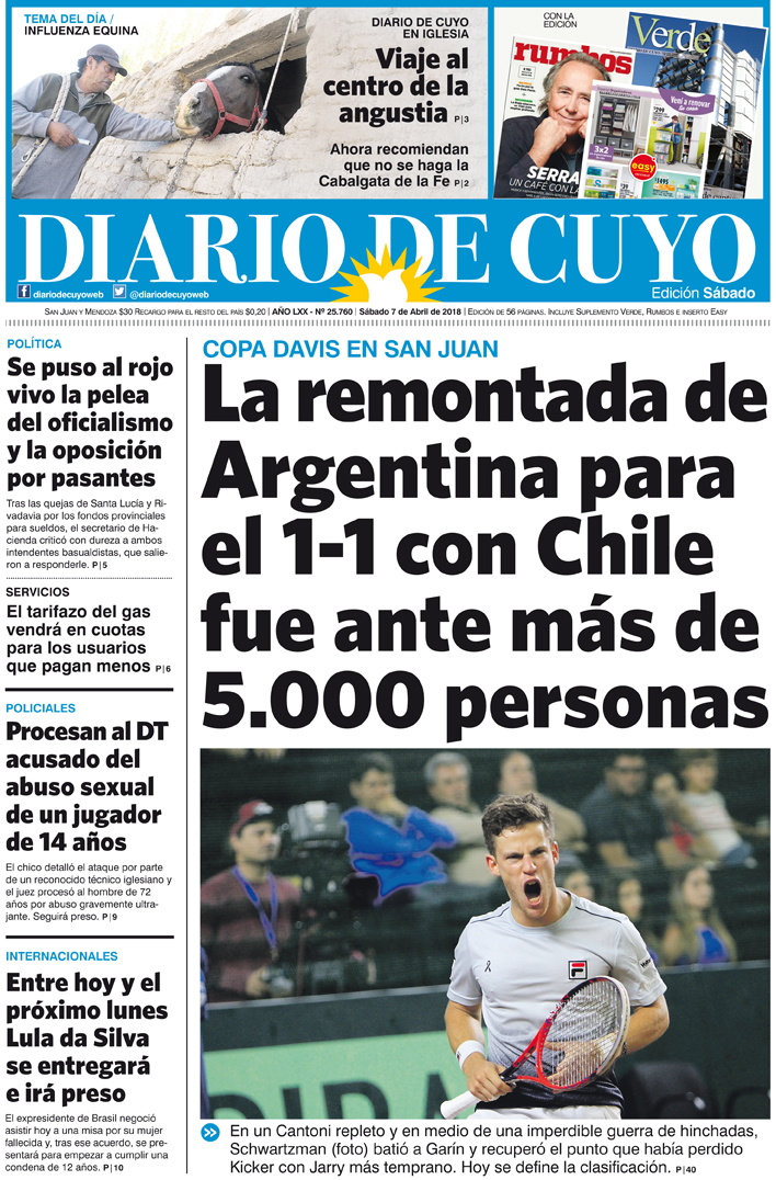 Diario de Cuyo | HOME | Noticias | Tapa Edición Tapa Edición 7 de Abril 2018 Por Redacción Diario de Cuyo 07/04/2018 · 0:00 Escuchar la noticia Escuchar la noticia Your browser doesn’t support HTML5 audio Tapa Edición Ver los comentarios ›