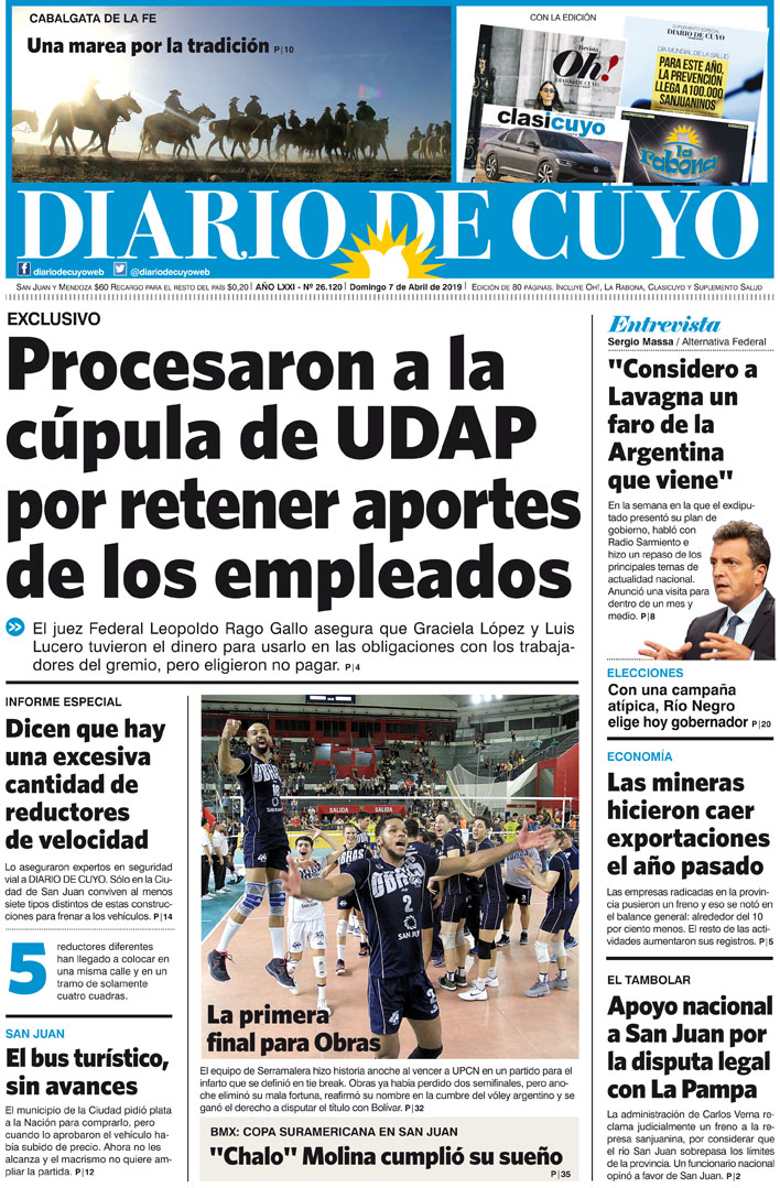 Diario de Cuyo | HOME | Noticias | Tapa Edición Tapa Edición 7 de Abril 2019 Por Redacción Diario de Cuyo 07/04/2019 · 0:00 Escuchar la noticia Escuchar la noticia Your browser doesn’t support HTML5 audio Tapa Edición Ver los comentarios ›