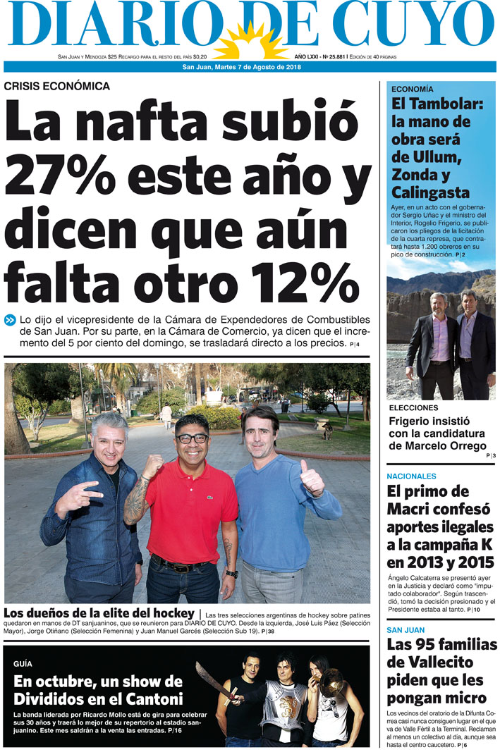 Diario de Cuyo | HOME | Noticias | Tapa Edición Tapa Edición 7 de Agosto 2018 Por Redacción Diario de Cuyo 06/08/2018 · 0:00 Escuchar la noticia Escuchar la noticia Your browser doesn’t support HTML5 audio Tapa Edición Ver los comentarios ›