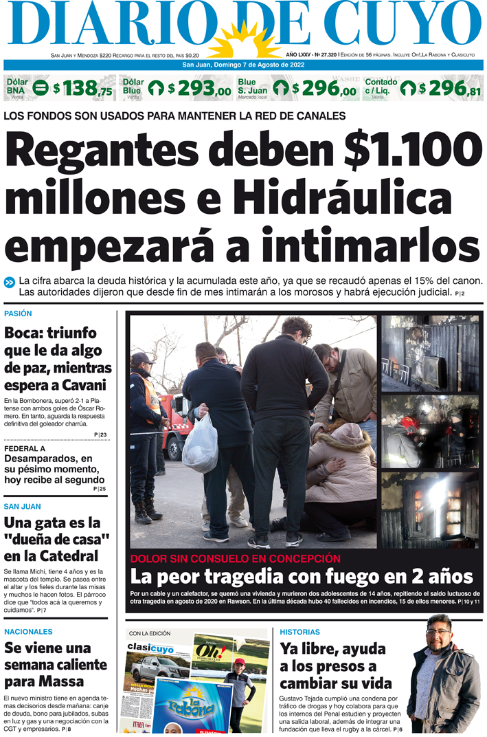Diario de Cuyo | HOME | Noticias Tapa Edición 7 de Agosto de 2022 Por Redacción Diario de Cuyo 07/08/2022 · 0:00 Escuchar la noticia Escuchar la noticia Your browser doesn’t support HTML5 audio Ver los comentarios ›