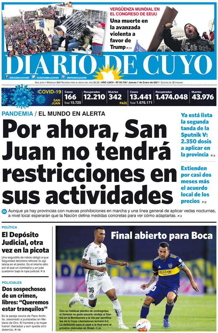 Diario de Cuyo | HOME | Noticias | Tapa Edición Tapa Edición 7 de Enero de 2021 Por Redacción Diario de Cuyo 06/01/2021 · 0:00 Escuchar la noticia Escuchar la noticia Your browser doesn’t support HTML5 audio Tapa Edición Ver los comentarios ›