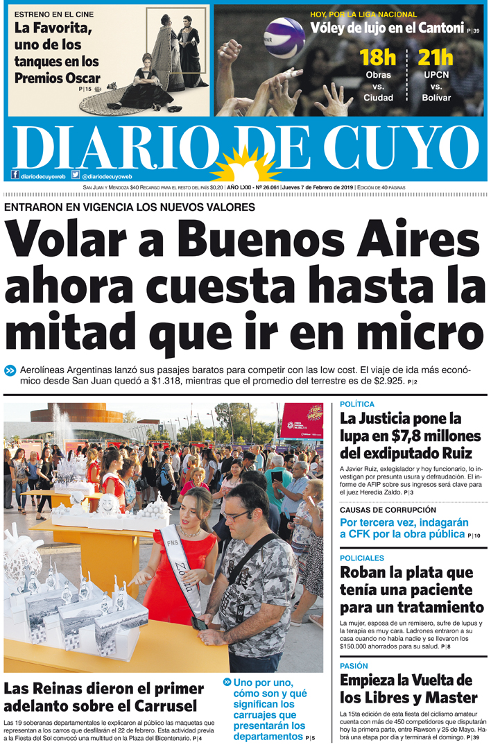 Diario de Cuyo | HOME | Noticias | Tapa Edición Tapa Edición 7 de Febrero 2019 Por Redacción Diario de Cuyo 06/02/2019 · 0:00 Escuchar la noticia Escuchar la noticia Your browser doesn’t support HTML5 audio Tapa Edición Ver los comentarios ›