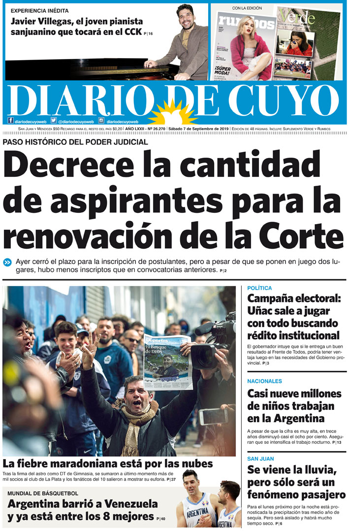 Diario de Cuyo | HOME | Noticias | Tapa Edición Tapa Edición 7 de Septiembre 2019 Por Redacción Diario de Cuyo 06/09/2019 · 0:00 Escuchar la noticia Escuchar la noticia Your browser doesn’t support HTML5 audio Tapa Edición Ver los comentarios ›