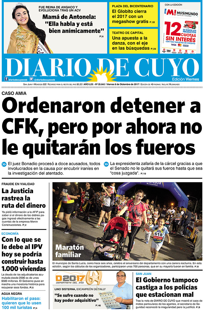 Diario de Cuyo | HOME | Noticias | Tapa Edición Tapa Edición 8 de Diciembre del 2017 Por Redacción Diario de Cuyo 07/12/2017 · 0:00 Escuchar la noticia Escuchar la noticia Your browser doesn’t support HTML5 audio Tapa Edición Ver los comentarios ›