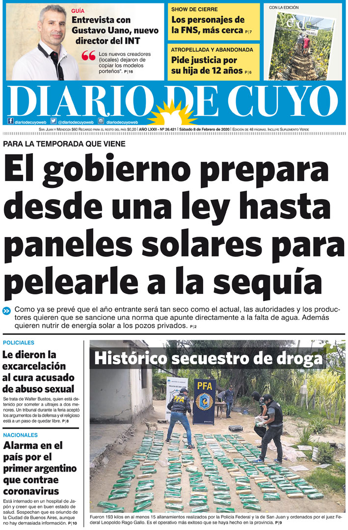 Diario de Cuyo | HOME | Noticias | Tapa Edición Tapa Edición 8 de Febrero 2020 Por Redacción Diario de Cuyo 07/02/2020 · 0:00 Escuchar la noticia Escuchar la noticia Your browser doesn’t support HTML5 audio Tapa Edición Ver los comentarios ›