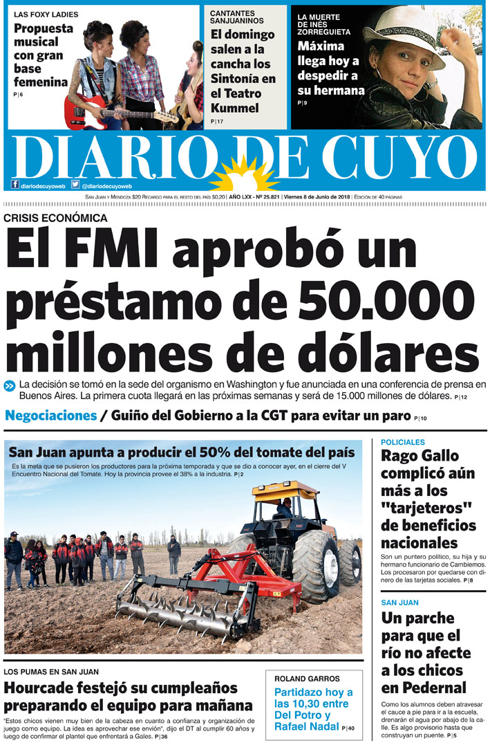 Diario de Cuyo | HOME | Noticias | Tapa Edición Tapa Edición 8 de Junio 2018 Por Redacción Diario de Cuyo 07/06/2018 · 0:00 Escuchar la noticia Escuchar la noticia Your browser doesn’t support HTML5 audio Tapa Edición Ver los comentarios ›