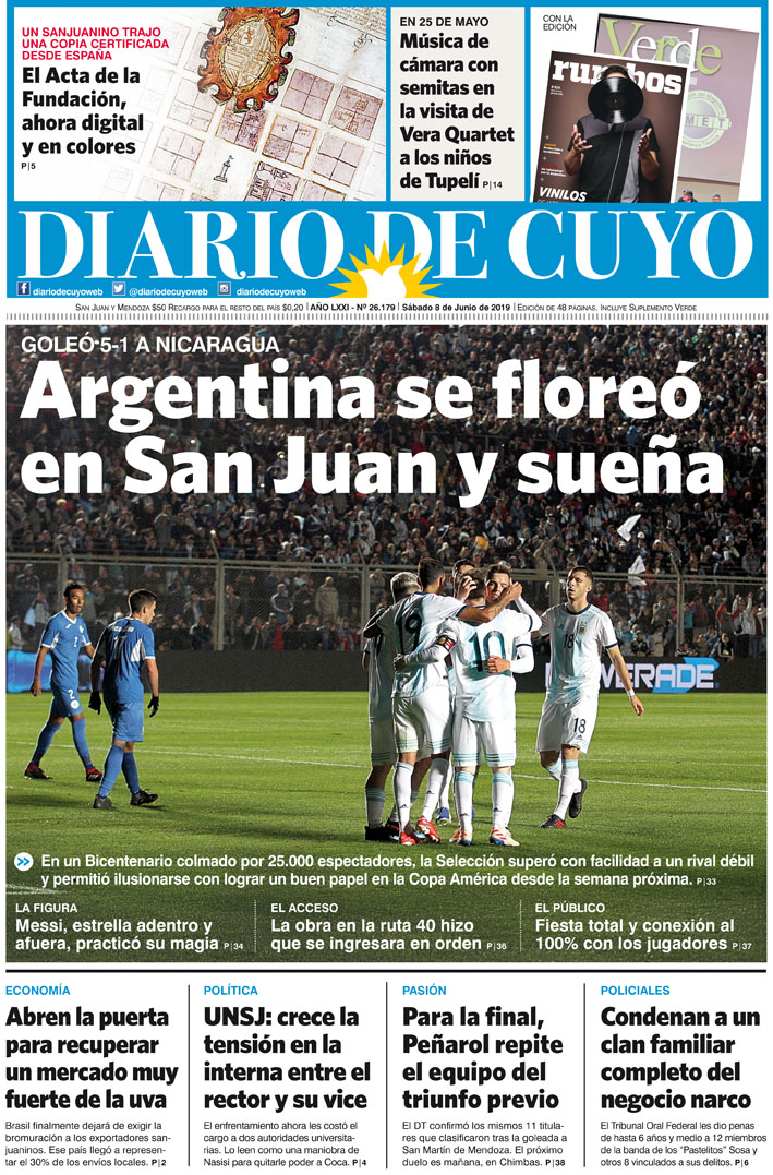Diario de Cuyo | HOME | Noticias | Tapa Edición Tapa Edición 8 de Junio de 2019 Por Redacción Diario de Cuyo 08/06/2019 · 0:00 Escuchar la noticia Escuchar la noticia Your browser doesn’t support HTML5 audio Tapa Edición Ver los comentarios ›