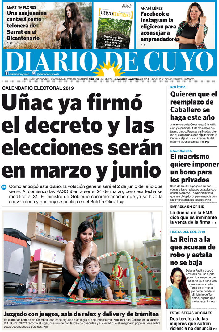 Diario de Cuyo | HOME | Noticias | Tapa Edición Tapa Edición 8 de Noviembre 2018 Por Redacción Diario de Cuyo 07/11/2018 · 0:00 Escuchar la noticia Escuchar la noticia Your browser doesn’t support HTML5 audio Tapa Edición Ver los comentarios ›