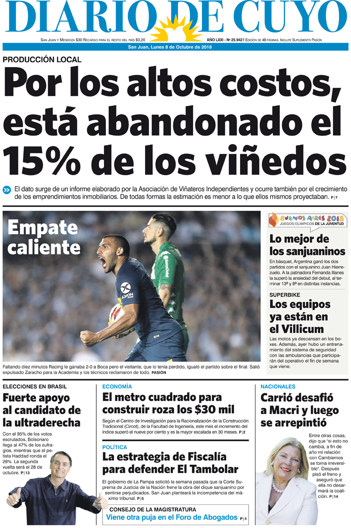 Diario de Cuyo | HOME | Noticias | Tapa Edición Tapa Edición 8 de Octubre de 2018 Por Redacción Diario de Cuyo 08/10/2018 · 0:00 Escuchar la noticia Escuchar la noticia Your browser doesn’t support HTML5 audio Tapa Edición Ver los comentarios ›