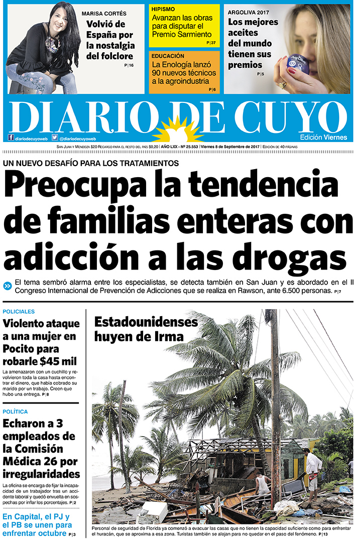 Diario de Cuyo | HOME | Noticias | Tapa Edición Impresa Tapa Edición 8 de Septiembre del 2017 Por Redacción Diario de Cuyo 08/09/2017 · 0:00 Escuchar la noticia Escuchar la noticia Your browser doesn’t support HTML5 audio Tapa Edición Impresa Ver los comentarios ›