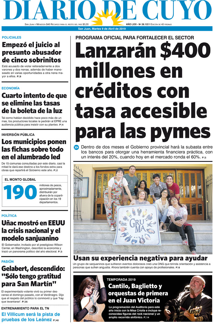 Diario de Cuyo | HOME | Noticias | Tapa Edición Tapa Edición 9 de Abril 2019 Por Redacción Diario de Cuyo 08/04/2019 · 0:00 Escuchar la noticia Escuchar la noticia Your browser doesn’t support HTML5 audio Tapa Edición Ver los comentarios ›