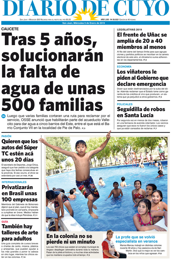 Diario de Cuyo | HOME | Noticias | Tapa Edición Tapa Edición 9 de Enero 2019 Por Redacción Diario de Cuyo 08/01/2019 · 0:00 Escuchar la noticia Escuchar la noticia Your browser doesn’t support HTML5 audio Tapa Edición Ver los comentarios ›