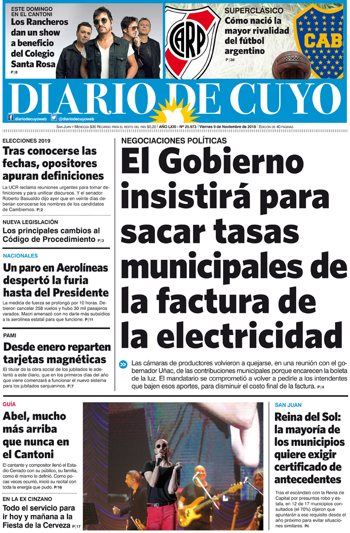 Diario de Cuyo | HOME | Noticias | Tapa Edición Tapa Edición 9 de Noviembre 2018 Por Redacción Diario de Cuyo 09/11/2018 · 0:00 Escuchar la noticia Escuchar la noticia Your browser doesn’t support HTML5 audio Tapa Edición Ver los comentarios ›