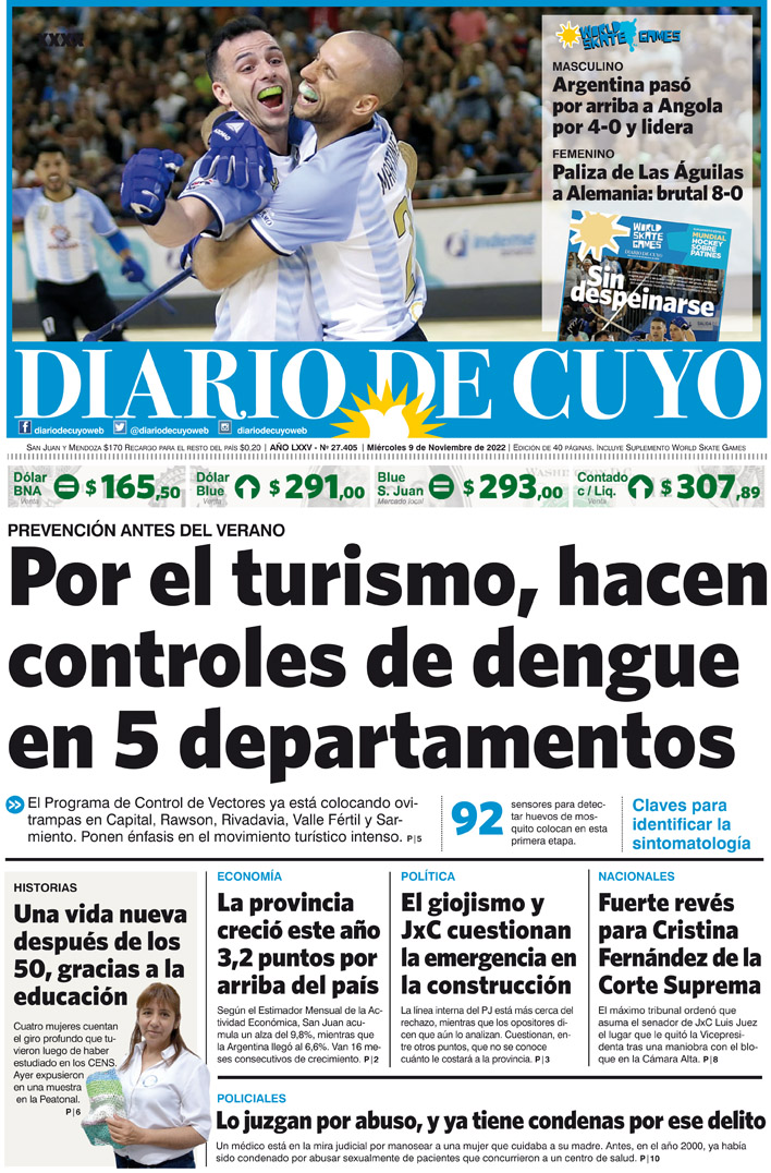 Diario de Cuyo | HOME | Noticias Tapa Edición 9 de Noviembre de 2022 Por Redacción Diario de Cuyo 09/11/2022 · 0:00 Escuchar la noticia Escuchar la noticia Your browser doesn’t support HTML5 audio Ver los comentarios ›