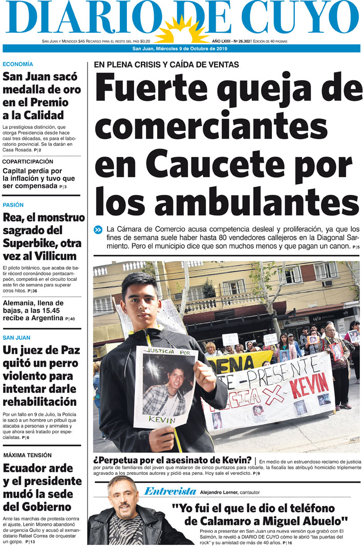 Diario de Cuyo | HOME | Noticias | Tapa Edición Tapa Edición 9 de Octubre 2019 Por Redacción Diario de Cuyo 08/10/2019 · 0:00 Escuchar la noticia Escuchar la noticia Your browser doesn’t support HTML5 audio Tapa Edición Ver los comentarios ›