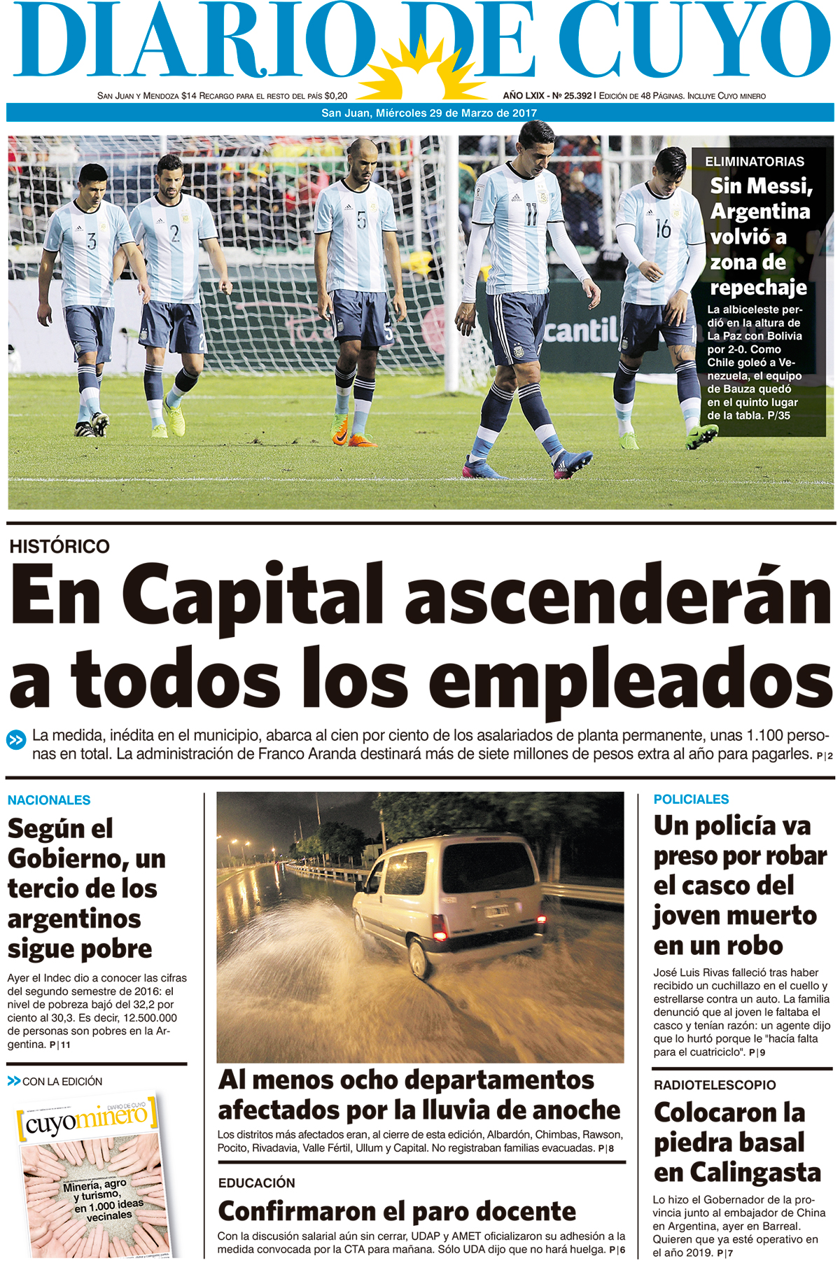 Diario de Cuyo | HOME | Noticias Tapa Ediciòn Impresa 29-mar-2017 Por Redacción Diario de Cuyo 29/03/2017 · 0:00 Escuchar la noticia Escuchar la noticia Your browser doesn’t support HTML5 audio Ver los comentarios ›